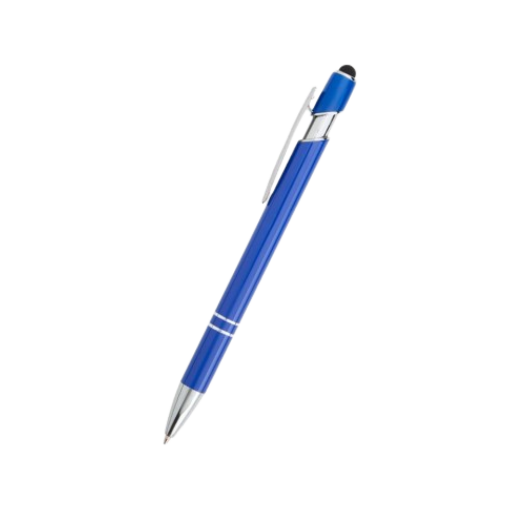 Caneta de Metal c/ Touch Azul Brilhante com Detalhes Prata